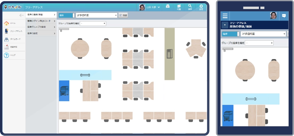 フリーアドレスオフィスにおける席の予約・確保と、